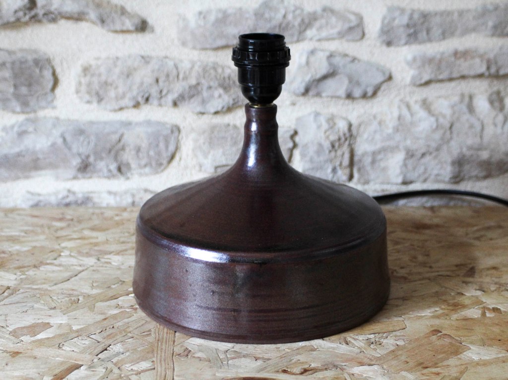Pied de lampe en céramique émaillé de Gabriel Hamm. Production des années 70-80. Joli émaillage bordeaux. En parfait état, pas de fêle ni d’éclat. Diamètre: 22.5cm. Hauteur sans la douille: 17cm. Signé sous la base. Ampoule non fournie.